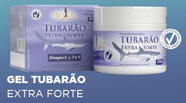 O gel desodorante para massagens Tubarão Extra ForteMary Life possui em sua formulação mentol, ômegas 3, 6, 7e 9. A combinação destes ingredientes promove conforto ebem-estar corporal após massagens constantes em regiõeslocalizadas.